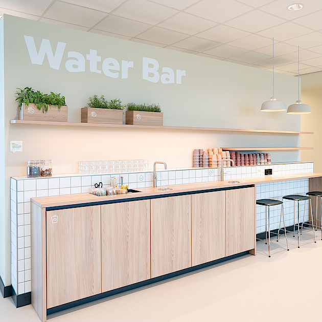 “The purpose of this concept is to entice employees, rather than force them to come into the office - by making the office a place where you want to be.” - Anouk Solleveld, project manager at Powerplant. Even the water bar has been designed as a dynamic element. Not a permanent coffee corner, but a place that engenders movement - and thus rhythm in the space.