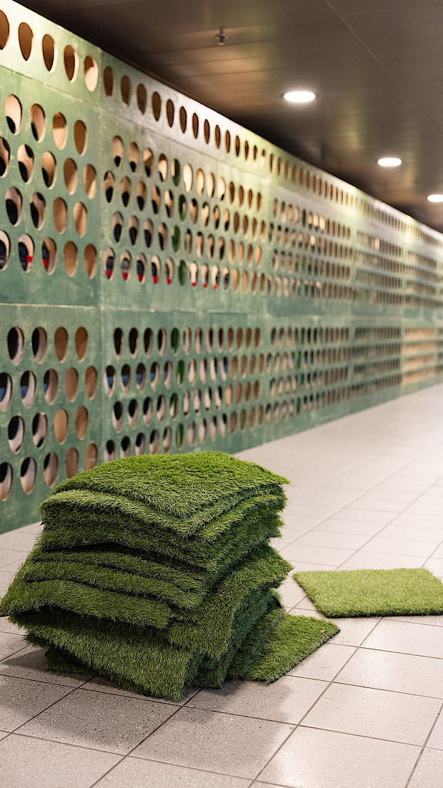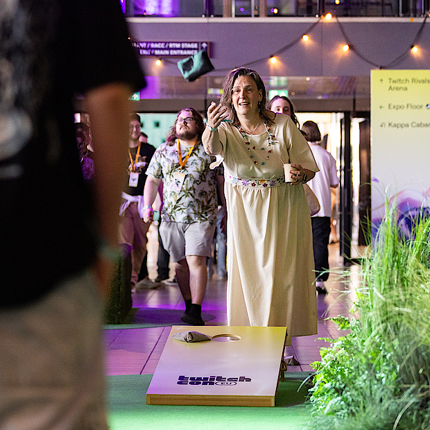 De grass wall is een knipoog naar de uitspraak ‘go touch grass’, een bekende uitdrukking in de gamewereld. Die wordt vaak gebruikt als iemand veel online is, dat het tijd is om de buitenlucht in te gaan. Op TwitchCon namen we dat letterlijk: even weg van het scherm, en écht gras voelen.