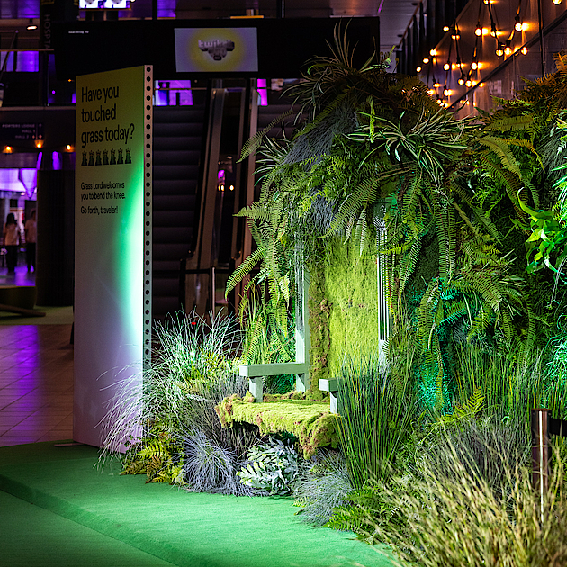 We werkten samen met agency George P. Johnson en het Twitch-team om het creatieve concept te vertalen naar praktische oplossingen. Zodat zelfs de wildste ideeën tot leven komen. Zoals de zes meter brede ‘Grass wall’, een volledig met gras en mos gevulde wand. “De bezoekers kunnen hier het gras daadwerkelijk aanraken”, vertelt Marloes, accountmanager bij Gielissen.