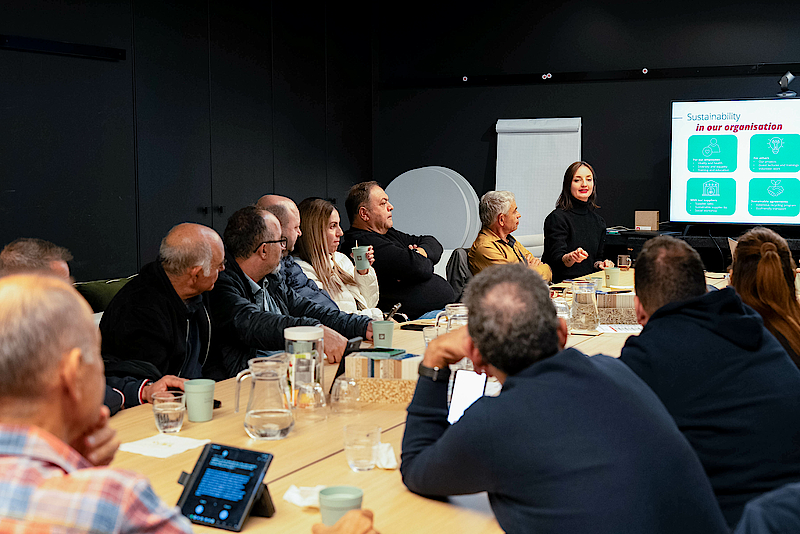 Wer echte Fortschritte im Bereich Nachhaltigkeit erzielen will, braucht das richtige Know-how. Deshalb sind wir stolz auf unsere Sustainability Officers Eva Nijeboer und Meggy Smulders. Sie zeigten den Teilnehmenden, wie Gielissen Zirkularität im Innenausbau und im Messebau anwendet – von Materialströmen und Wiederverwendung bis hin zur Zusammenarbeit mit Architekten, um nachhaltige Entscheidungen schon in der Entwurfsphase zu verankern.