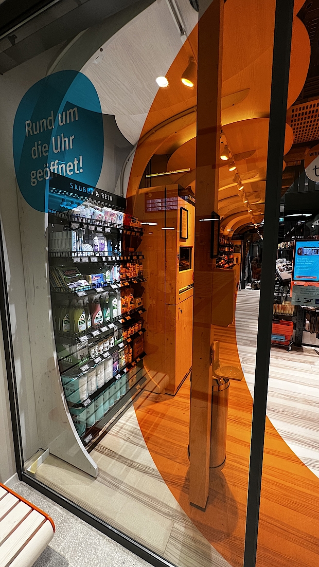 Tegut teoIn collaboration with design agency design for human nature, Gielissen built the interior for teo: a small, unstaffed supermarket that is open 24/7. Teo is an initiative of Tegut, a German supermarket chain with more than 300 stores. The concept was created to address the growing need for convenient and accessible shopping, especially in areas that lack traditional stores. The entire interior was built in the workshop of Gielissen GmbH Hannover.