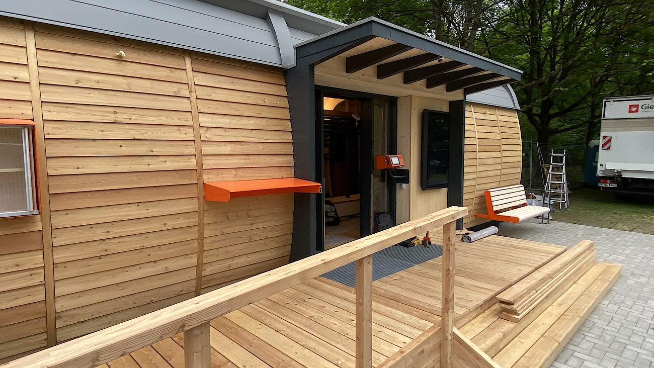 Design for human nature developed the concept. A compact, modular store with a cleverly designed layout and a distinctive look. Gielissen translated the design into a fully prefabricated interior that fits into less than 13 square meters. The routing is intuitive; the shelves are tailor made, and the self-scan zone is small but easy to navigate. Tegut’s familiar red accents create a consistent look and feel, whether the store is situated in a residential neighborhood or on an industrial estate.
