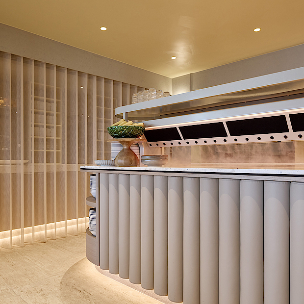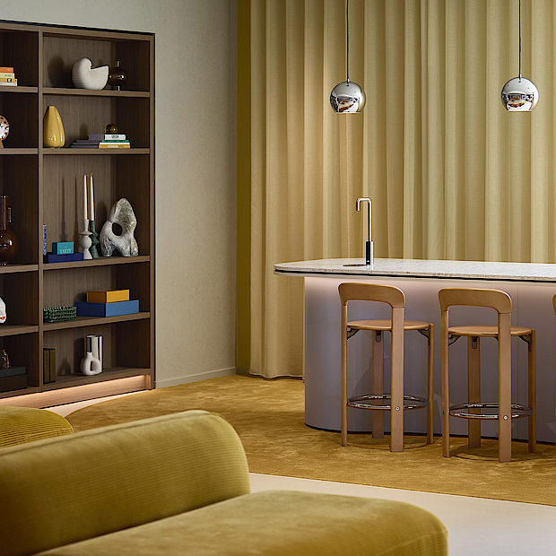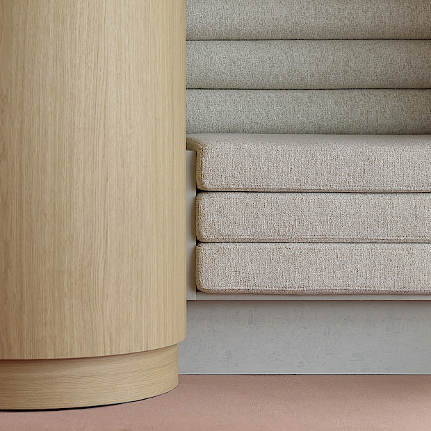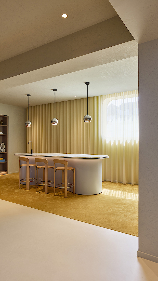De doorlooptijd was kort, de afstemming intensief. Meubels werden geproduceerd terwijl de bouw nog liep. Voor de ronde zitbank werd een vloermal gemaakt zodat de gietvloer er naadloos omheen kon worden gegoten. Verlaagde plafonds kregen uitschuifbare delen voor onderhoud, zonder zichtbare naden of verstoringen in het lijnenspel.