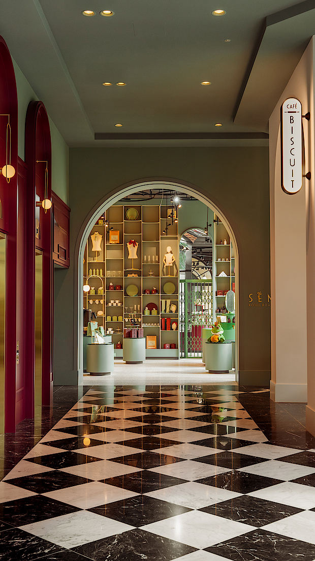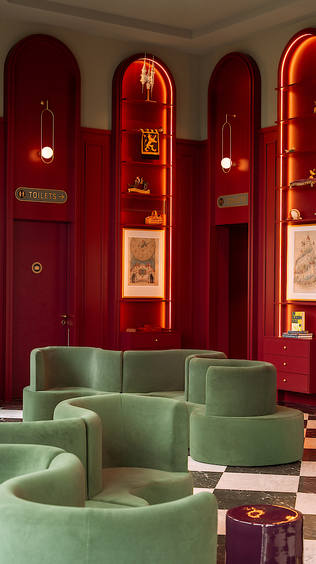 De publieke ruimtes zoals de magische entreelobby, hotelboutique Sense, de spa met zwembad en sauna en de restaurants Mystique en Brasserie 7, vroegen om maatwerk met een andere schaal en dynamiek. De messing welkomstbalie, ronde koffiebar en de bars zijn rechtstreeks uit het ontwerp vertaald en afgestemd op intensief gebruik en veiligheid. In de spa kozen we voor materialen die bestand zijn tegen chloor en temperatuurwisselingen, kennis die we eerder opdeden in maritieme projecten. Zo kreeg elke ruimte dezelfde zorgvuldige combinatie van sfeer, functionaliteit en duurzaamheid.