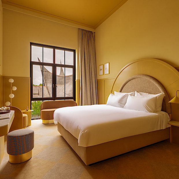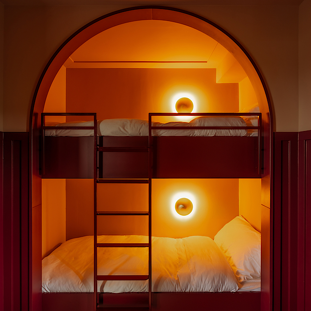 Het ontwerp van de 140 familiekamers – goed voor in totaal 644 bedden voor gasten van alle leeftijden – is allesbehalve standaard. Denk aan ronde vormen, verschillende kleurthema’s, diorama’s en stapelbedstedes. De uitdaging was om hoogwaardige specials te maken in een grote serie. Dankzij slimme engineering en een strak geregisseerd productieproces bleef de kwaliteit van elke kamer op topniveau. Tegelijk bleef er ruimte voor de maatwerkdetails die het ontwerp vroeg. Op die manier vertaalden we de visie van de architect naar een project dat goed te beheersen was.